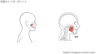 咬筋(こうきん)のトリガーポイントとは?咬筋ってどんな筋肉?咬筋は、頬の外側にある噛むための筋肉です。食事のときに食べ物を噛んだり、奥歯で食べ物をすりつぶしたりするときに働きます。また、食事中だけでなく、無意識の食いしばり歯ぎしりストレスが...