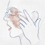 - 目のまわりをなでるように